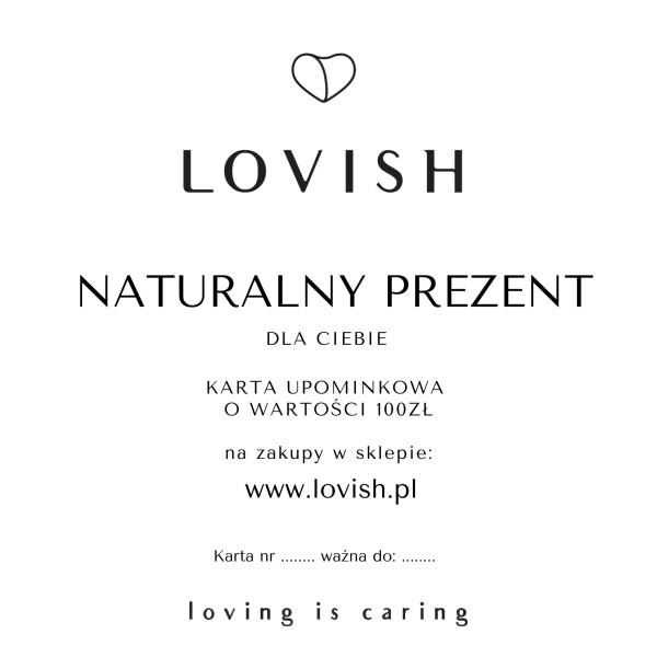 Aby zrealizować kartę, kod ten należy wpisać w polu KOD w koszyku zakupowym na naszej stronie www.lovish.pl.